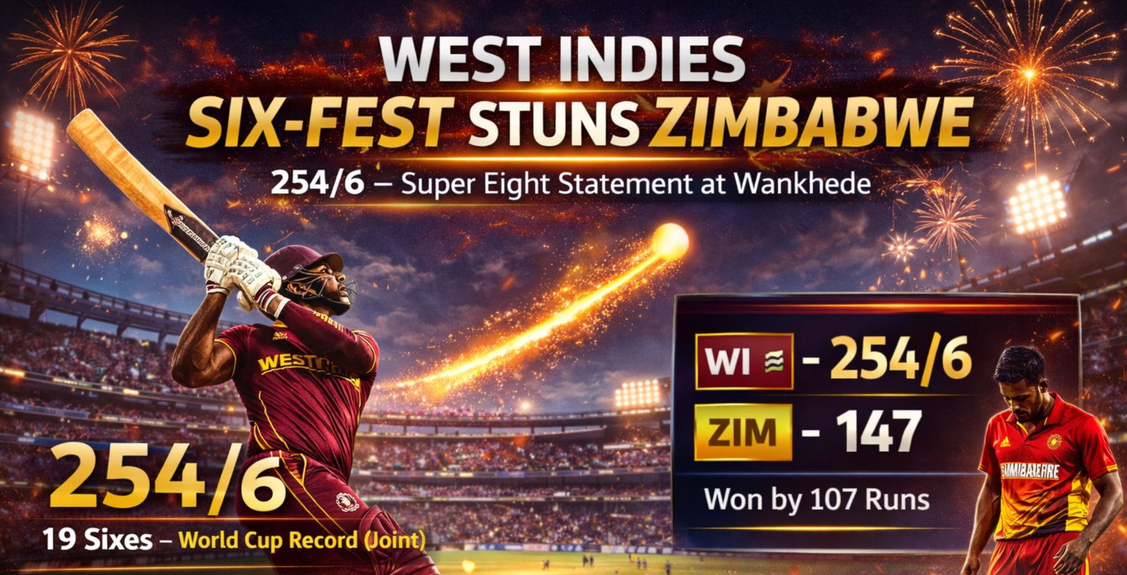 West Indies Unleash Six-Storm to Crush Zimbabwe